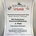 2.Platz bei der Schulschachmeisterschaft Bezirk Pforzheim/ Enz WK RS