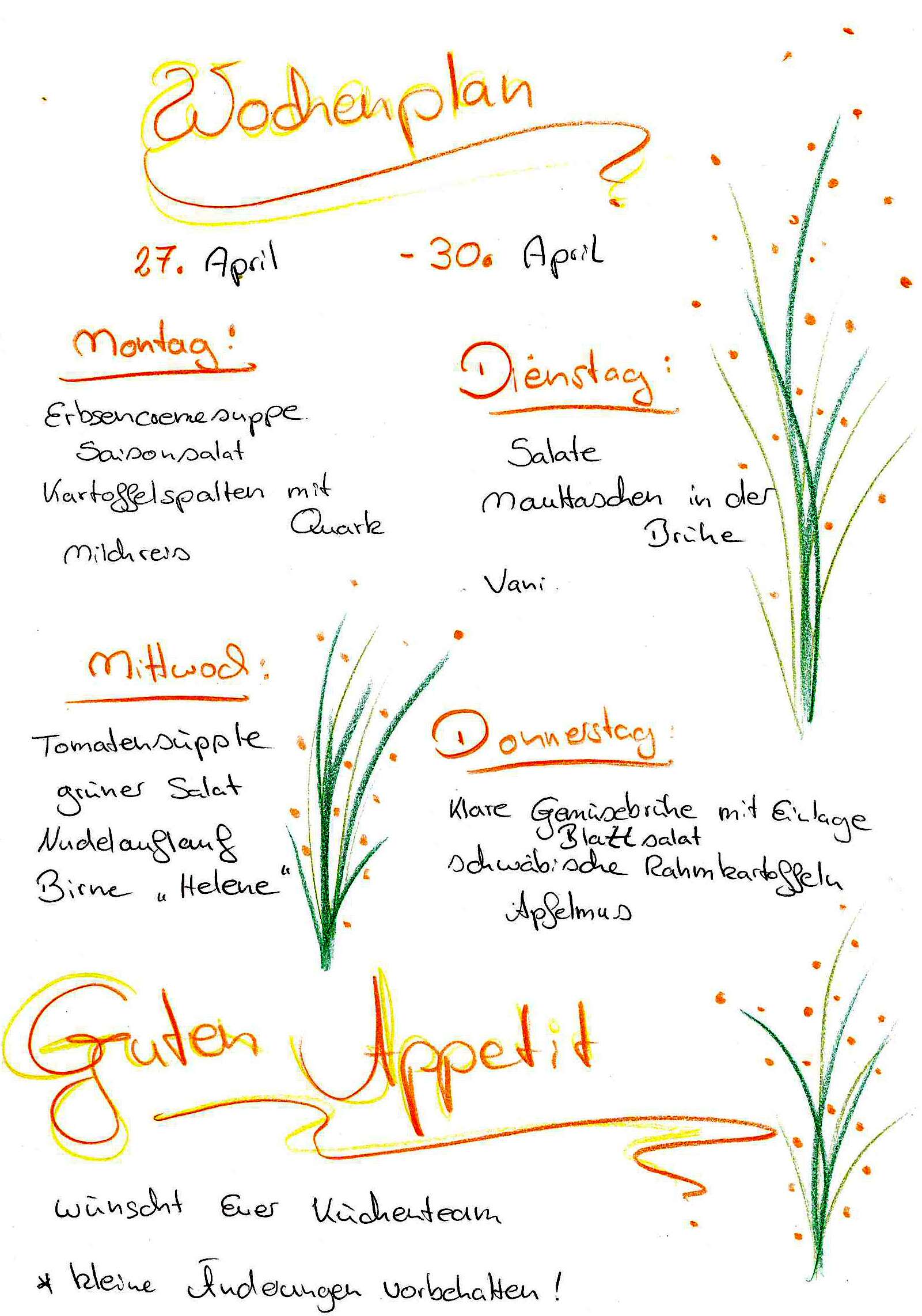 Aktuelle Speisekarte